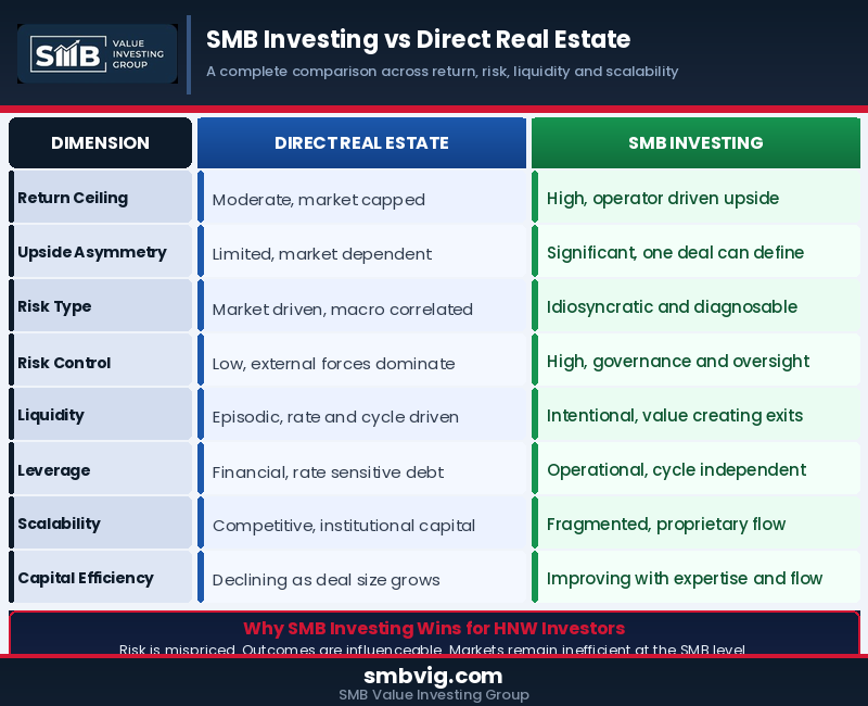 SMB Investing vs Direct Real Estate: Dimension by Dimension